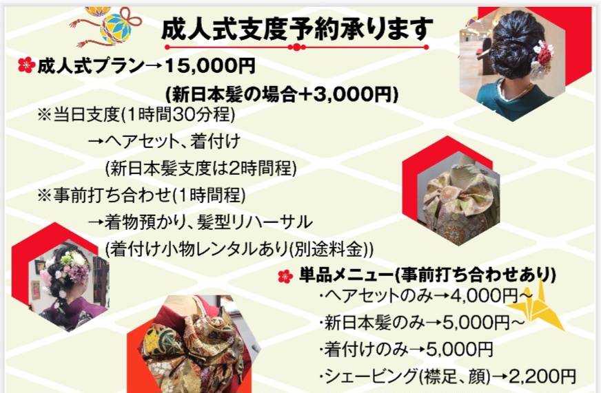 成人式支度予約受付のお知らせ | 八戸の理容室・美容室 サカシタ理容と美容の店【弱酸性】
